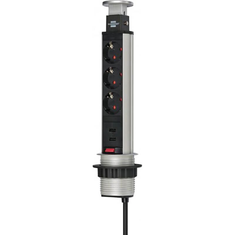 Izvlačna utičnica PVC 3*šuko 2xUSB FI-60mm siva