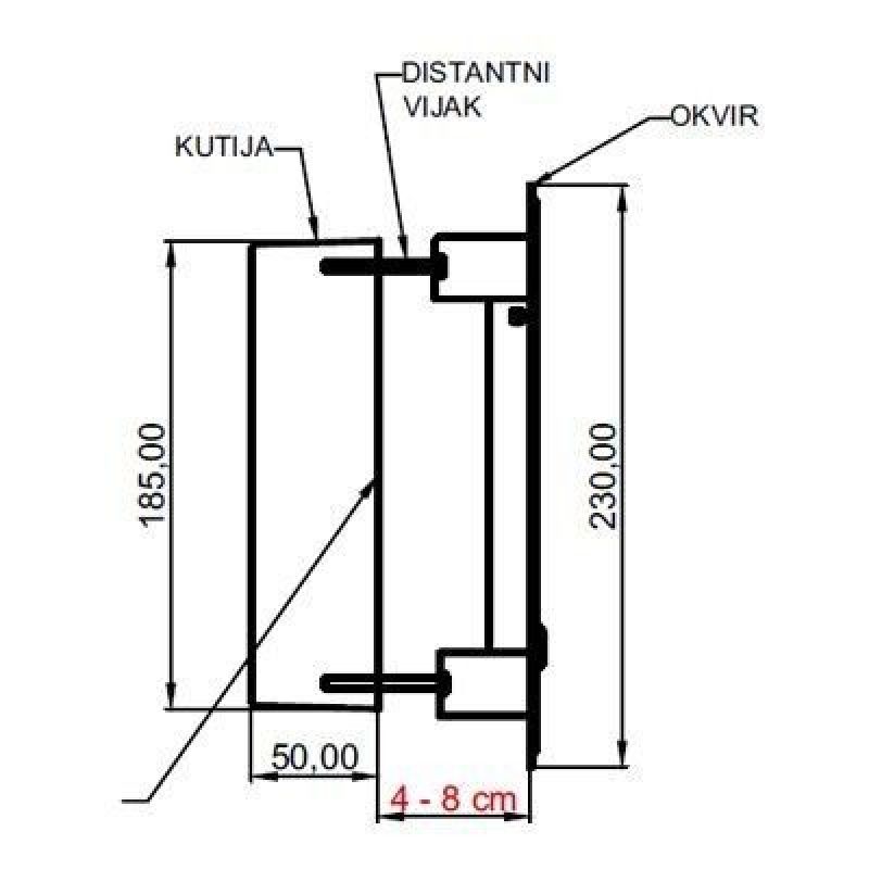 Ormarić za mjerni spoj tip GOMS 01 veličine 230x180x90 namjenjen je za smještaj mjernoga mjesta unutar zida. Sastavljen je od plastične kutije veličine 185x135x50 otporne na atmosferske utjecaje i poklopca ormarića izrađenog od Fe-Zn ili AiSi koji može biti i elektrostatski plastificiran. Kutija se ugrađuje u zid objekta 4-8 cm od površine fasade. Poklopac se montira nakon završetka fasade distantnim vijcima za već ugrađenu plastičnu kutiju ili ako nema kutije direktno na zid. Prošireni okvir pokriva ostavljeni otvor a distantni vijci omogučavaju pritezanje okvira u rasponu od 4-8 cm. Izrađen je prema propisima i standardima. Kat.br. 124103