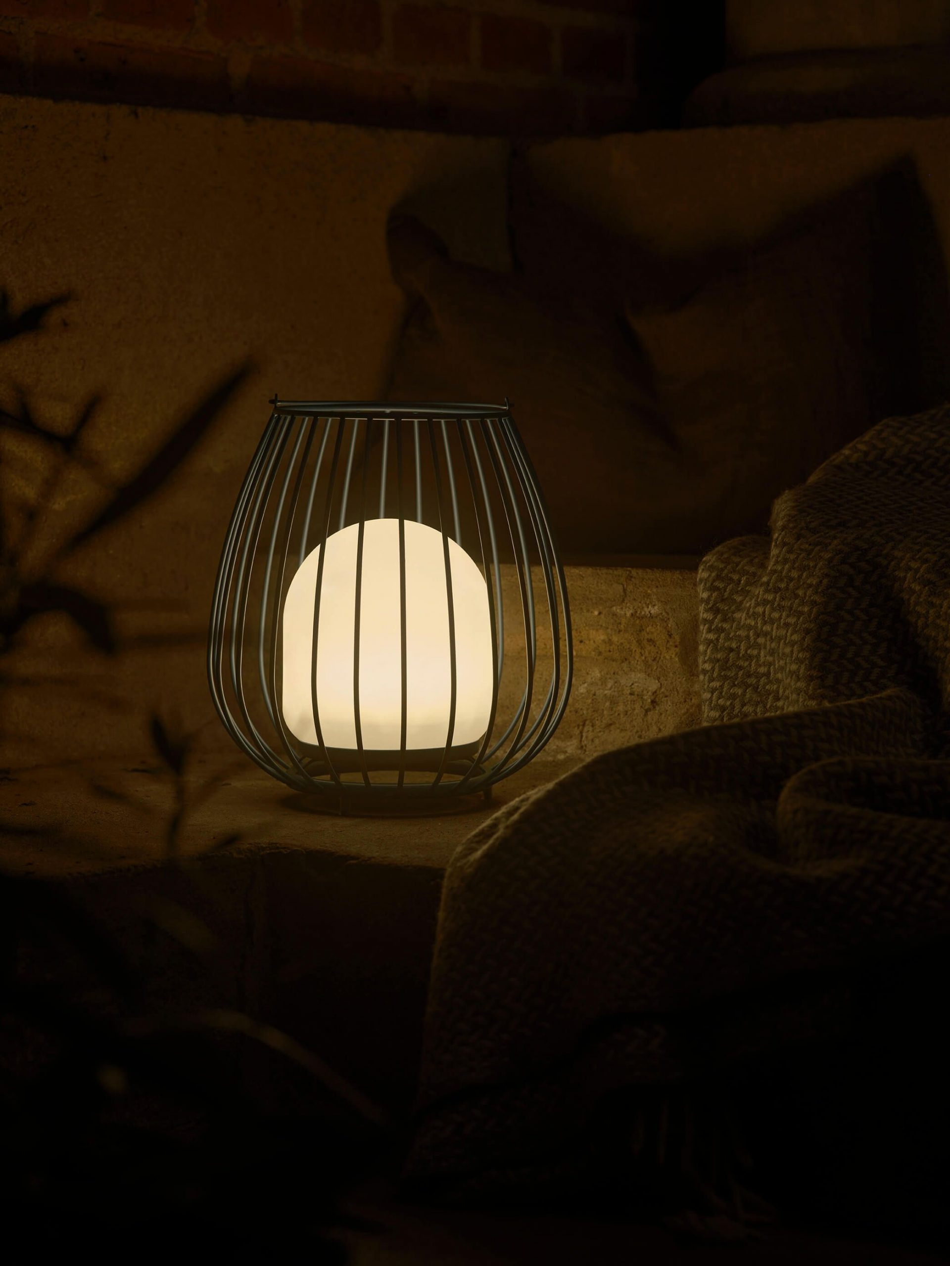 Jim je dizajnirao danski dizajnerski dvojac Says Who. Serija ima zaobljenu, prozračnu siluetu i praktičnu ručku koja olakšava postavljanje gdje god vam je potrebna. Prijenosna lampa napaja se baterijama i ima Moodmaker™ funkcionalnost koja omogućuje podešavanje svjetla u tri različite postavke – savršeno za stvaranje pravog ambijenta na terasi, balkonu ili u vrtu. Lampa se lako puni priloženim USB kabelom