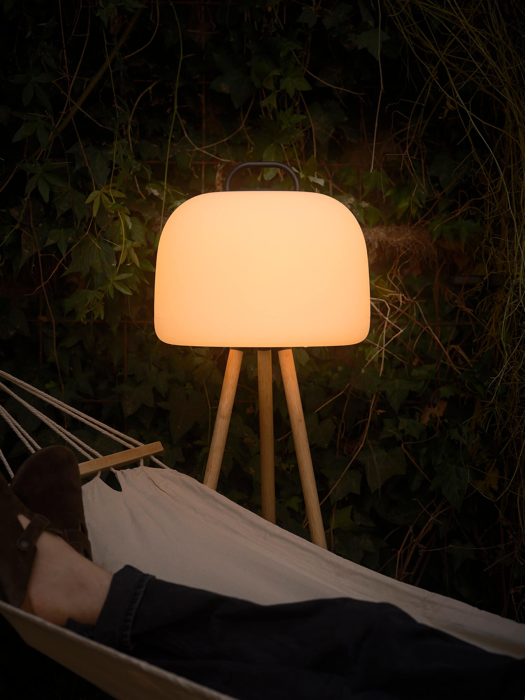 Mogućnosti su beskrajne sa serijom Kettle, jer možete odrediti vrstu lampe koju želite pomoću zamjenjivih dodataka. Dizajn i funkcionalnost pažljivo su osmišljeni, tako da serija prekrasno osvjetljava vaš svakodnevni život – i unutra i vani. Kettle nije samo dekorativan, već pruža i dobro svjetlo, a istovremeno se svjetlina svjetla može podesiti u tri razine. Ugrađena baterija ima trajnost do pet sati pri punoj snazi, pa čak i dulje ako se svjetlo smanji na ugodno osvjetljenje. Svjetiljka se lako puni priloženim USB kabelom.