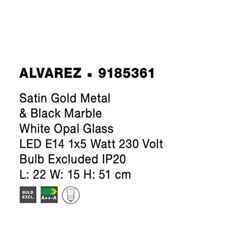 Stolna svjetiljka ALVAREZ LED E14 1x5W 230V saten zlatni metal, crni mramor i bijelo opalno staklo. Kat.br. 9185361
